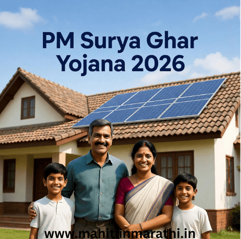 PM Surya Ghar Yojana 2026 : पीएम सूर्य घर योजना २०२६ अंतर्गत ३०० युनिट मोफत वीज आणि ७८,००० रुपयांपर्यंत सबसिडी मिळवा. पात्रता, कागदपत्रे, नवीन नियम आणि महाराष्ट्रातील ‘स्मार्ट’ सोलर योजनेची संपूर्ण माहिती येथे वाचा.